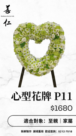 ​心型花牌適合至親及家屬選用,多達30種款式任君選擇,所有花牌保證新鮮製作,謝絕重用。